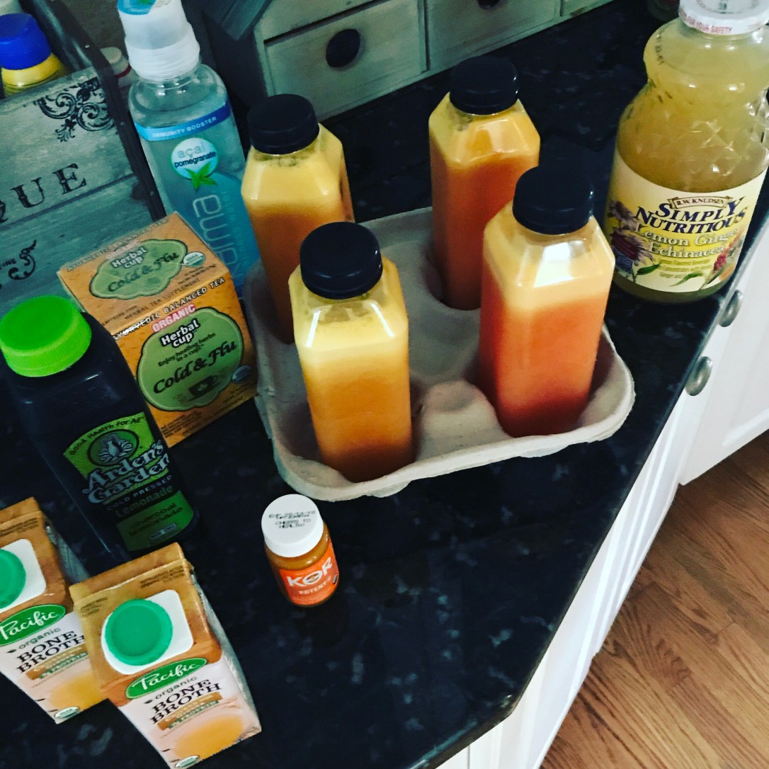On the agenda was a wheat grass shot, power C shot, immunity water, all the immunity defense juices possible and of course tea and vitamins.